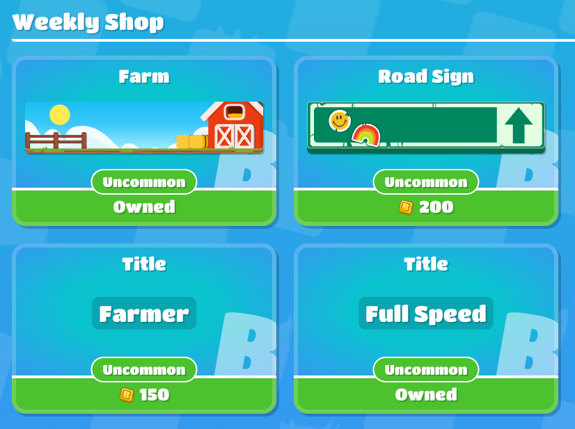 Scroll down to the Weekly Shop to find rotating items such as Banners, Titles, and Blook parts.