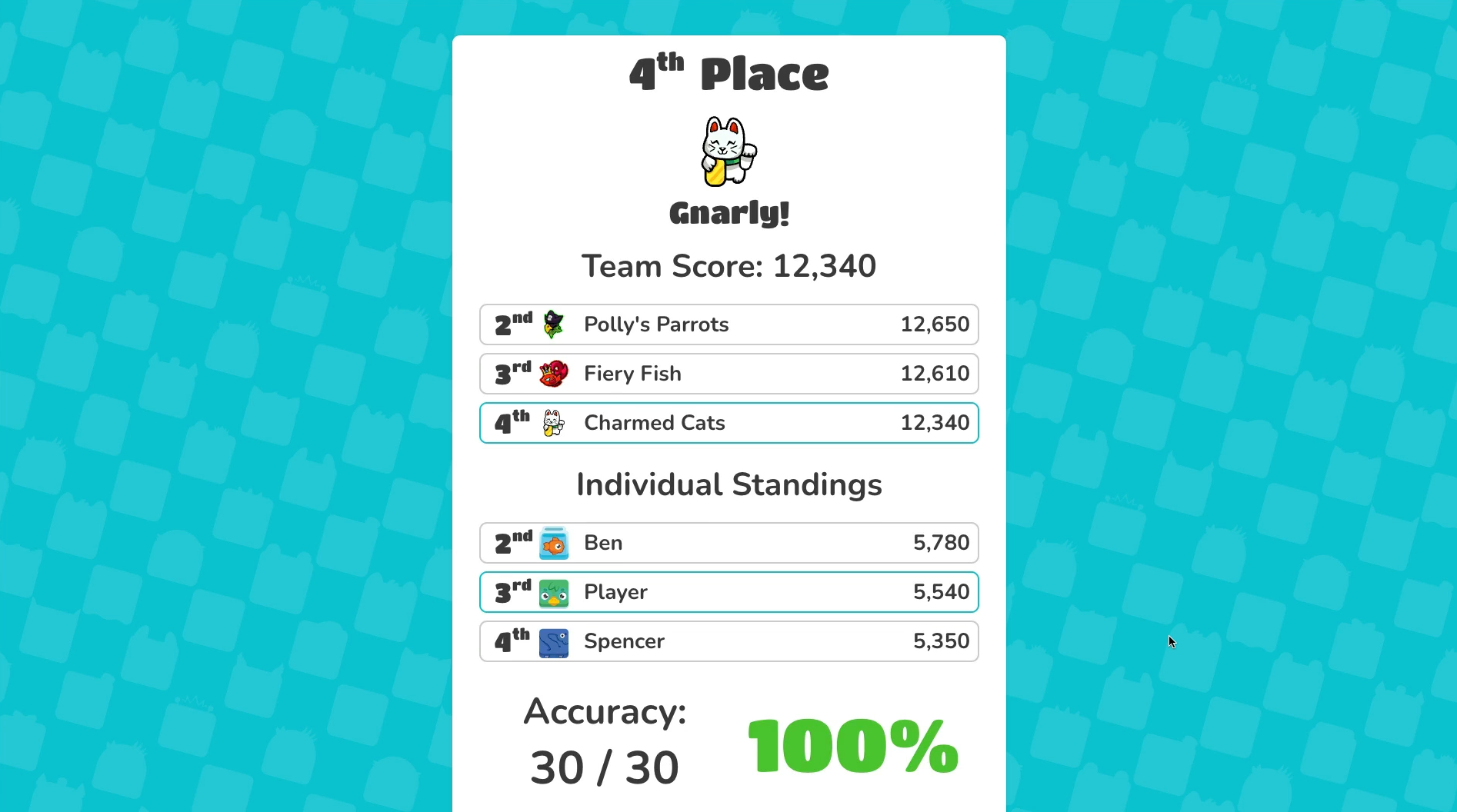 Team Mode: Host screen shows full team results, player screens show individual performance and team results.
