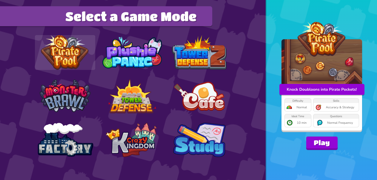 - Choose a Solo Game Mode – Click a game logo to preview: