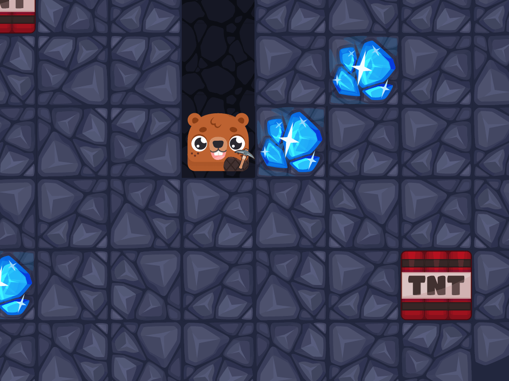 - TNT clears surrounding blocks instantly, collecting all ore in the blast area.