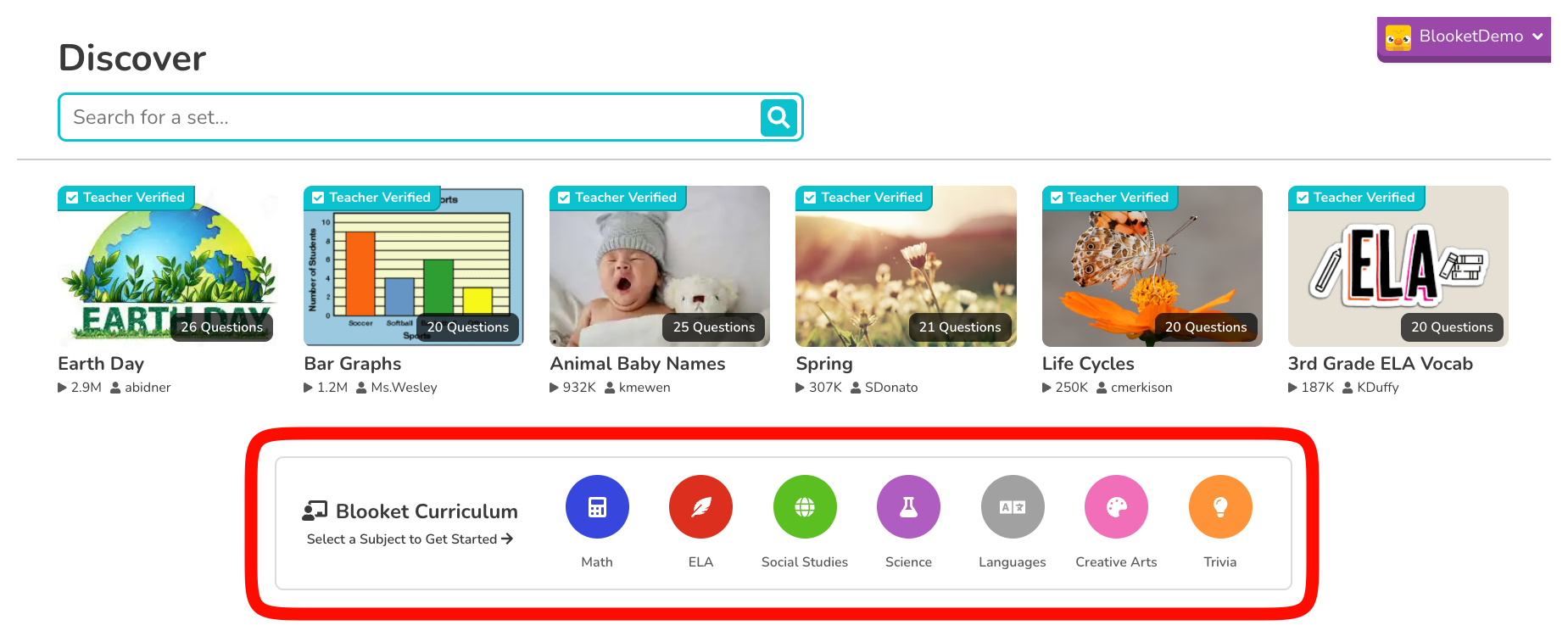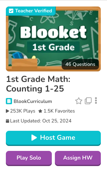 Go back to the Curriculum page or navigate directly to play.blooket.com/solo