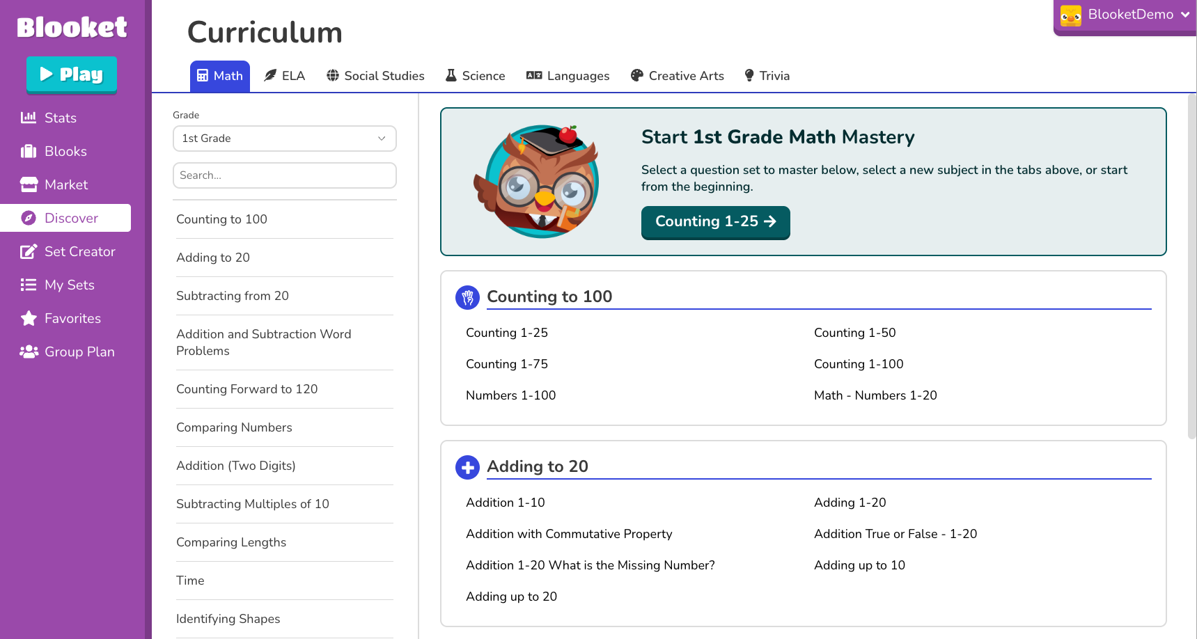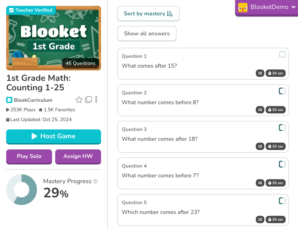 Note: Mastery progress is only saved for Blooket Curriculum Sets.